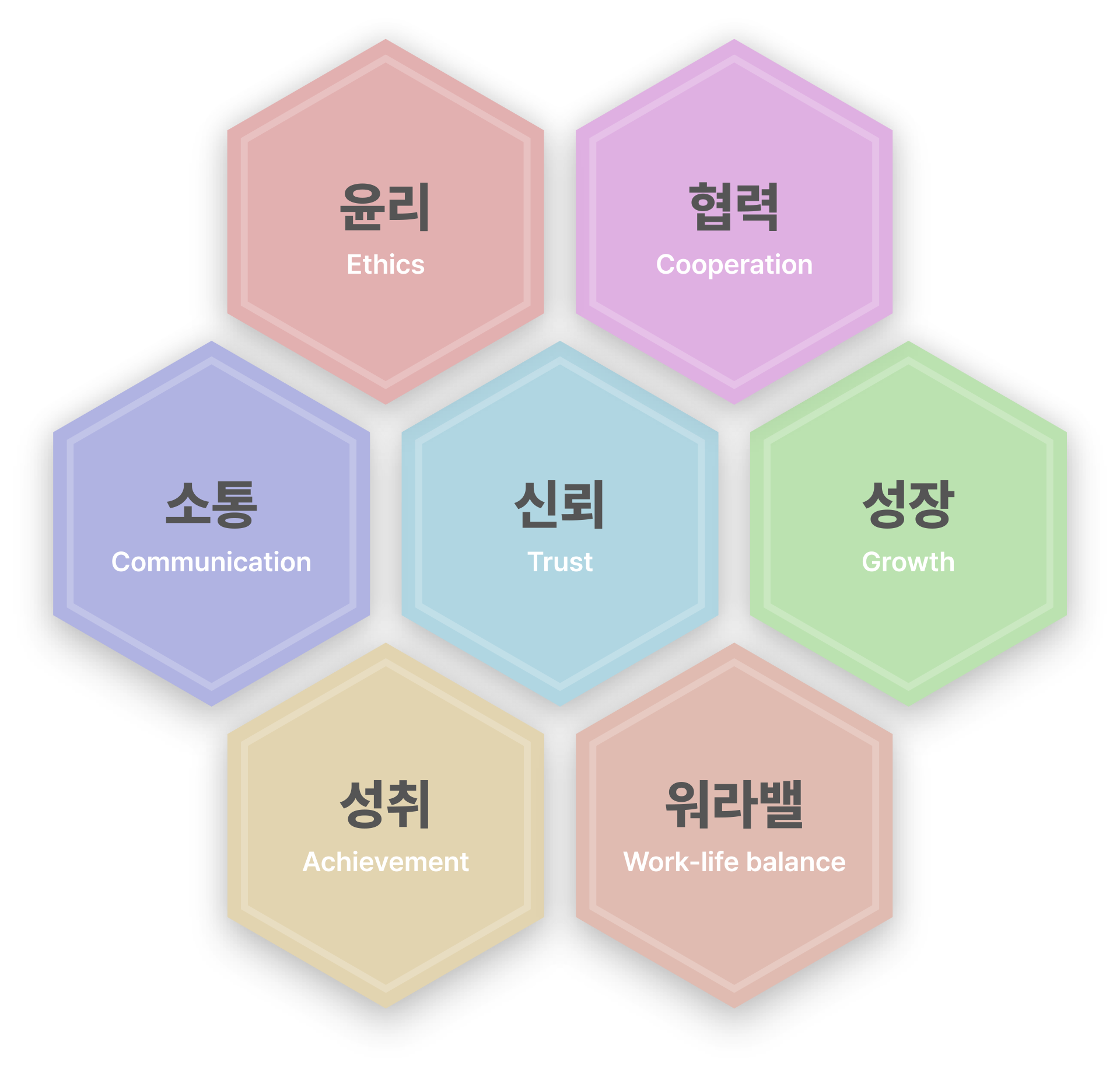 핵심가치 : 윤리, 협력, 소통, 신뢰, 성장, 성취, 워라밸